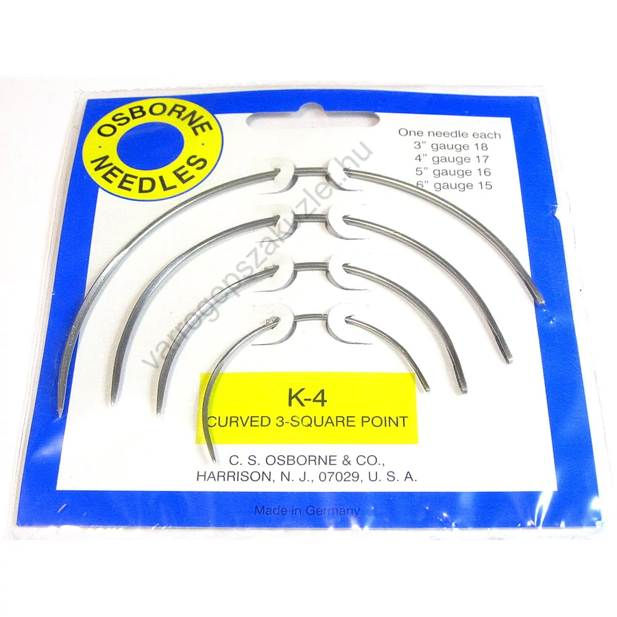 A készlet 4db különböző hosszú és vastag bőrvarró tűt tartalmaz.
